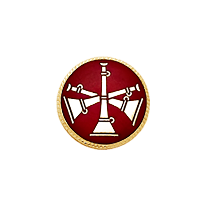 Three Fire Bugles collar insignia with colored enamel background. For blue enamel, use model C177FBE. For black enamel, use model C177FBKE. Available in 15/16" (0.9375"), 7/8" (0.875"), 3/4", 5/8" (0.625"), and 1/2".