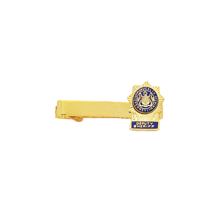 Engraved Tie Bar with Sunburst Badge on the right. The Sunburst Badge is model C504. This Tie Bar can take any C504 pin.
