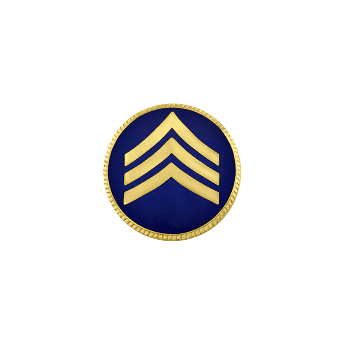Blue Sergeant Chevron collar seal insignia. Available in several finishes and sizes. Available in 15/16" (0.9375"), 7/8" (0.875"), 3/4" (0.75"), 5/8" (0.625"), and 1/2" (0.5").