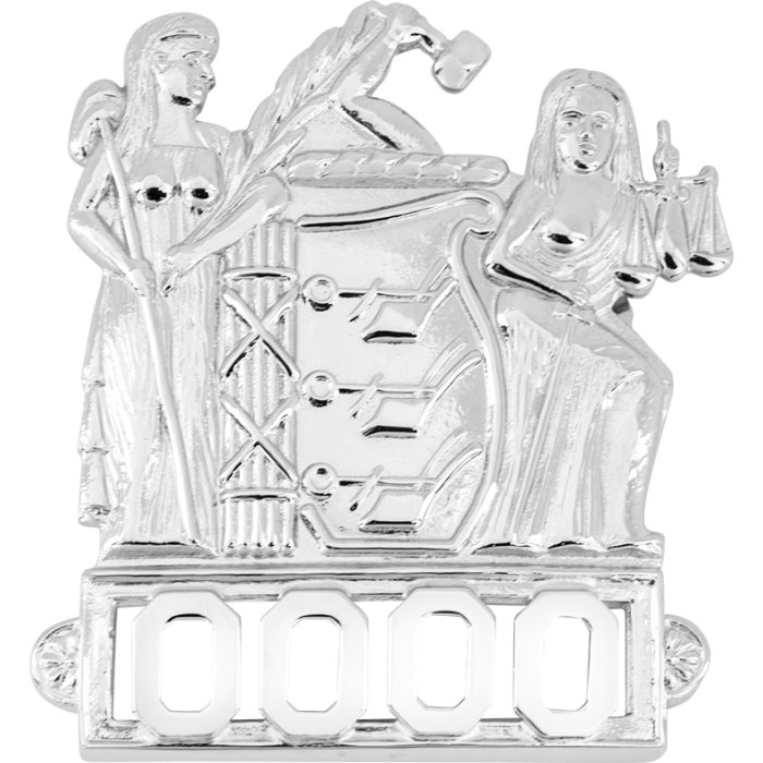 Newark, NJ Police Hat Badge. The coat of arms features an open panel at the bottom that can take the applied numbers of your choice.