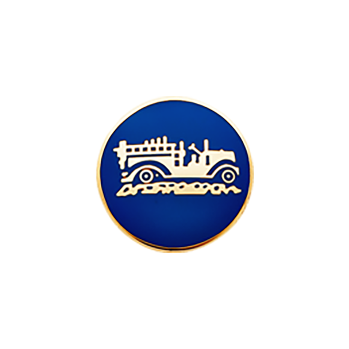 Antique fire truck collar insignia with a blue enamel background. For red enamel, use model C938FRE. For a plain seal, use model C938P. Available in several finishes and sizes. Available in 15/16" (0.9375"), 7/8" (0.875"), 3/4" (0.75"), 5/8" (0.625"), and 1/2" (0.5"). This item can be placed on a badge, but only on Smith & Warren Badges. This item cannot be placed on a Blackinton Badge or on any EPoliceSupply In Stock Badge.