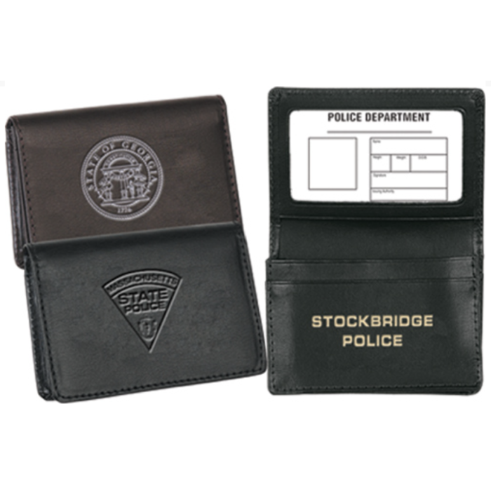 This popular style gusseted bonded leather card case features an inside ID window and two card pockets. An additional card pocket is on the back of the case.