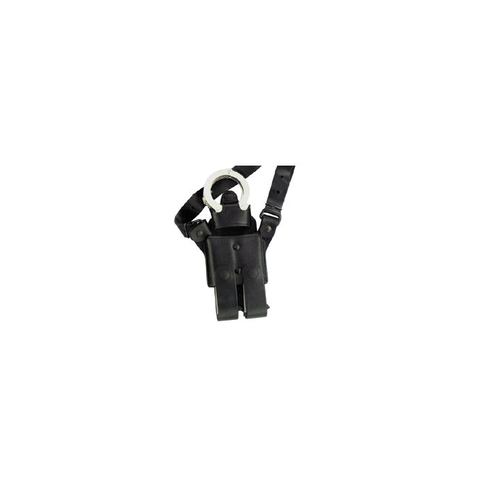 Breakaway cuff holder for the H260 and H261 shoulder holster system. This is just for the handcuff holder only, not the double magazine holder that is pictured. Available in plain black and plain tan. Handcuffs not included.