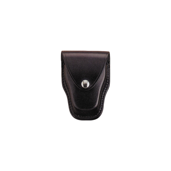 Styles: A505, A505-1. Cuff case carries cuffs in chain (A505) or hinge-down position (A505-1). Fits belts up to 2-1/2" wide. Available in Black in plain, basketweave, and high-gloss Clarino. Available closures include nickel, brass, and black snaps; hidden snaps; or with Velcro.