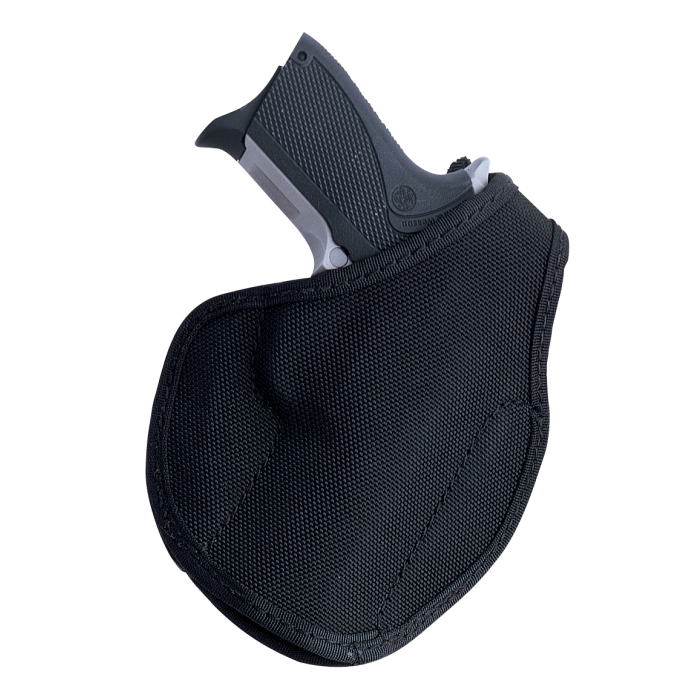 Equipped with the Piece-Keeper safety latch to secure your weapon. The holster has a unique tunnel belt system that gives a clean look but pulls the holster in close to you. Available for semi-autos only and fits 1 3/4" belts. Gun not included.