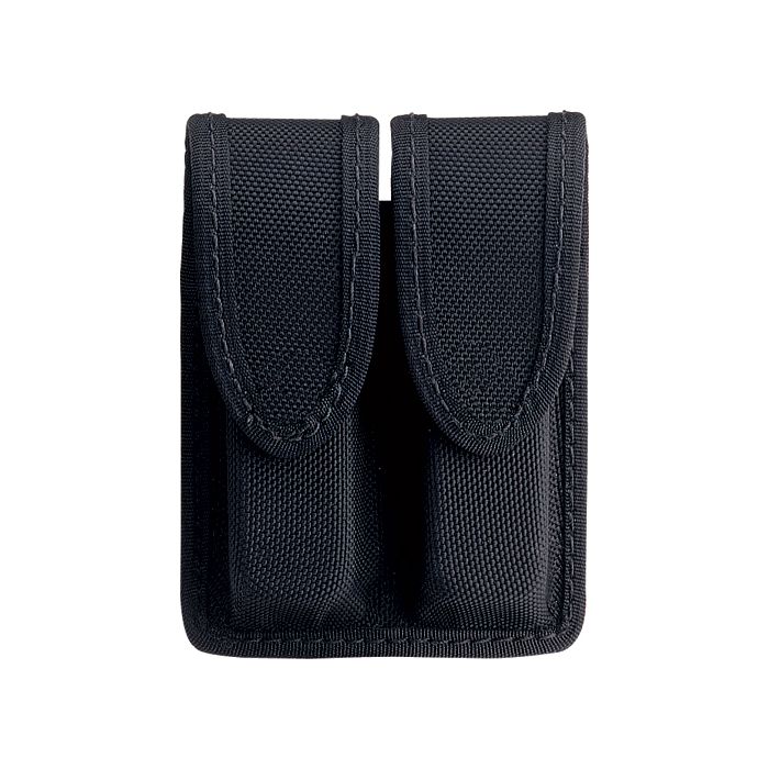 Style: N417. Strongcore™ double magazine pouch for most magazines. Fits vertically or horizontally on belt. Designed to slide or snap on 2" or 2 1/4" belts. Please specify gun model when ordering. Hidden snap only.