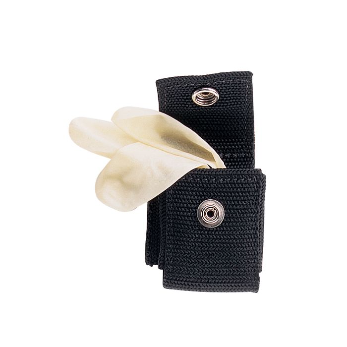 Strongcore™ Duty Belt Glove Pouch. Holds two pairs of surgical gloves for your personal protection. Designed to slide or snap on 2" or 2 1/4" belts. All web strap products are double thick for durability. Hidden snap only. Gloves not included.