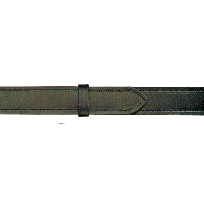 Reduces bulk for wearing under duty gun belt. 1 3/4" width in hefty 8/9 oz. cowhide, decorative stitching and burnished edge. Black only in plain or basket weave.